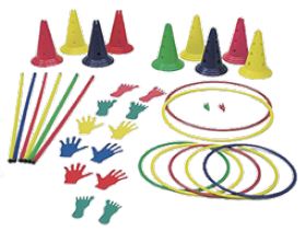 Kit psicomotori con mattoni, cerchi, aste, coni e clip